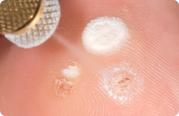 초기 병변이나 크기가 작은 경우 냉동치료(액화질소)로 병변을 괴사시키는 방법이 사용될 수 있습니다. 또한 국소 도포 약물을 통해 바이러스 감염 세포의 증식을 억제하는 치료가 병행되기도 합니다. 병변의 특성과 재발 이력에 따라 보존적 치료가 고려됩니다.